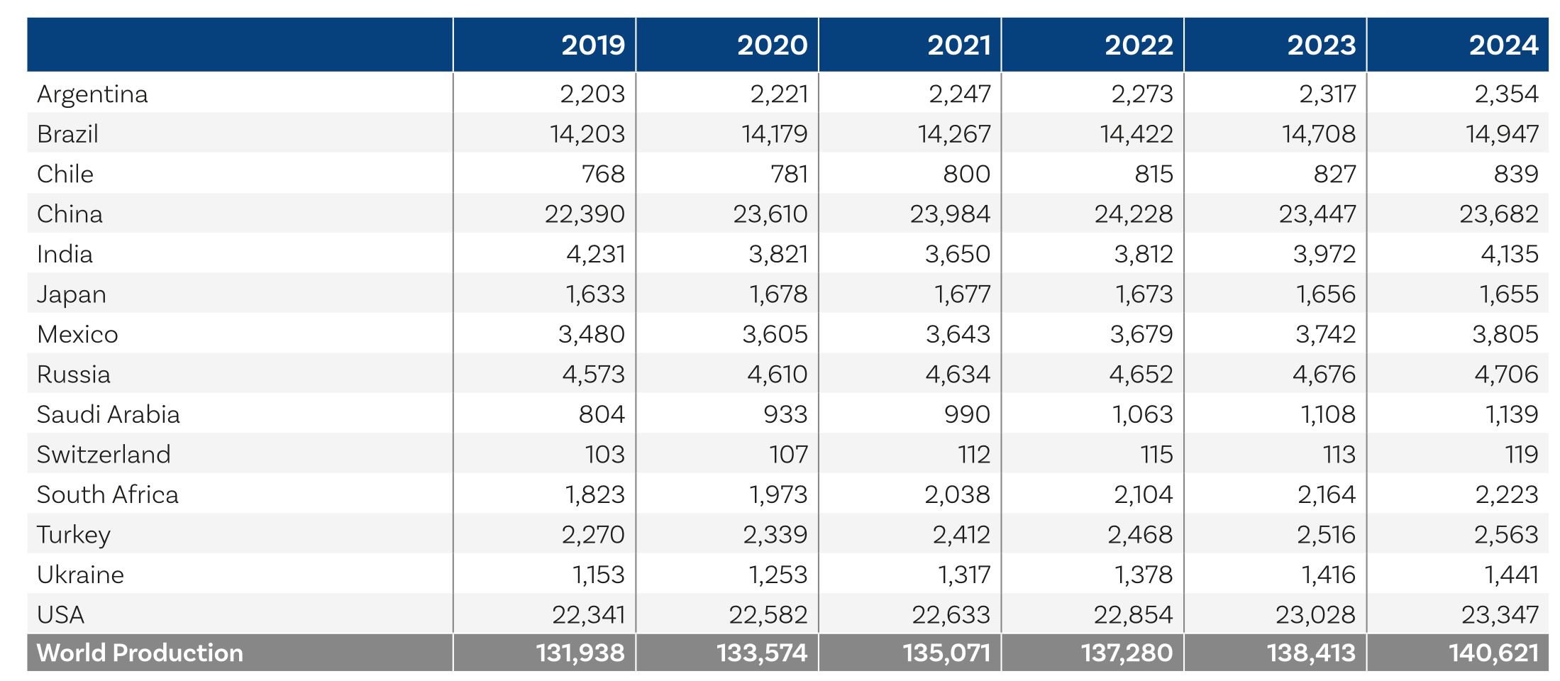 Looking at poultry meat production in the rest of the world, which reached 140,621 thousand tonnes in 2024, up compared to 2023, China ranked first, followed by the USA and Brazil—all three showing growth compared to the previous year (Table 2).