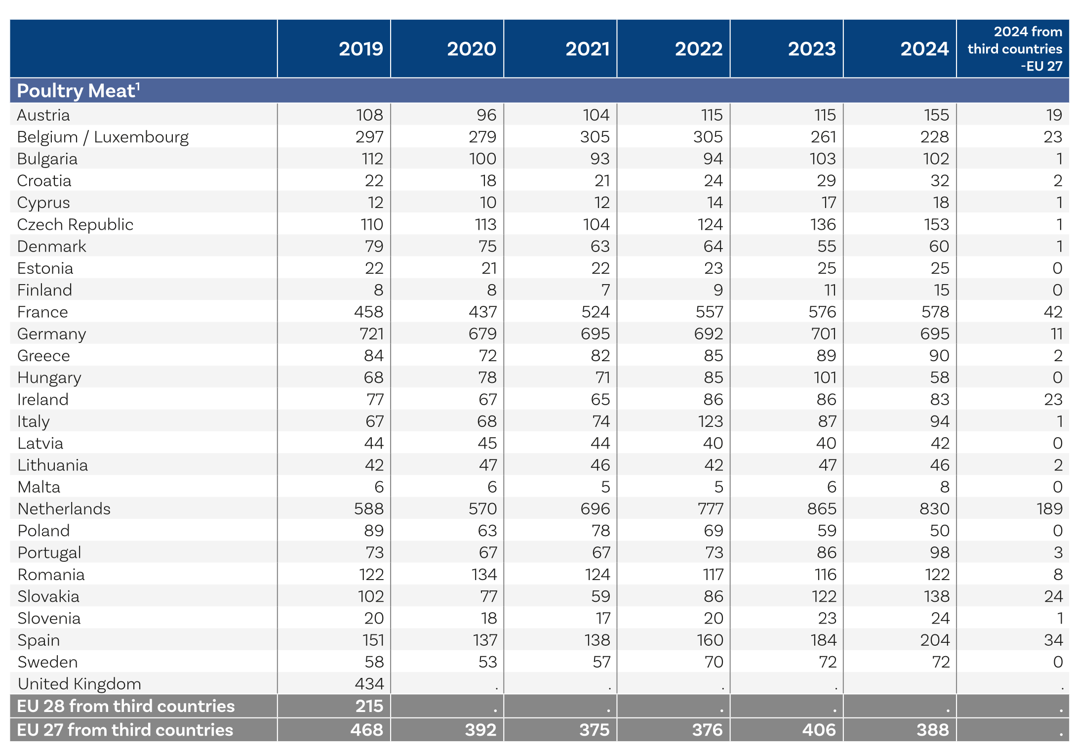 In the EU, the largest importers of poultry meat were the Netherlands and Germany, both down compared to the previous year, and France, which showed a slight increase (Table 3).