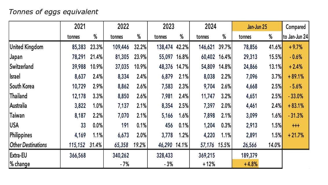 Total export volume reached 189,379 tonnes of egg equivalent in the first half of 2025.