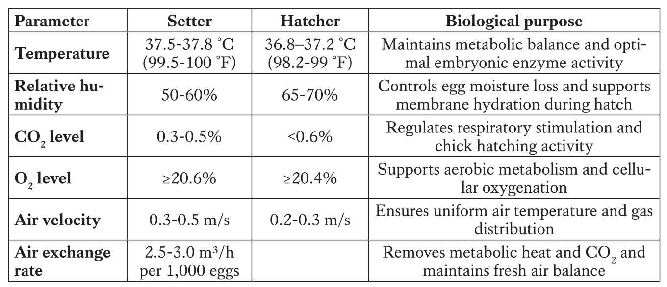Proper climate controls therefore support not only embryonic respiration but also organ formation, muscle development and thermoregulatory capacity of the newly hatched chick.