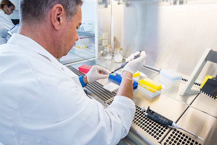 IBDV viral genome copy number was quantified from all extracted RNA (bursa, faeces, dust and litter) using a TaqMan® IBDV specific qRT-PCR assay developed and validated by Authors based on the sequence data for IBDV VP2 of Ignjatovic and Sapats (2002) and carried out in a Rotor Gene 3000 Real-time PCR instrument (Corbett Research, Mortlake, NSW, Australia). A standard curve based on plasmid standards of known genome copy number was used for absolute quantification.