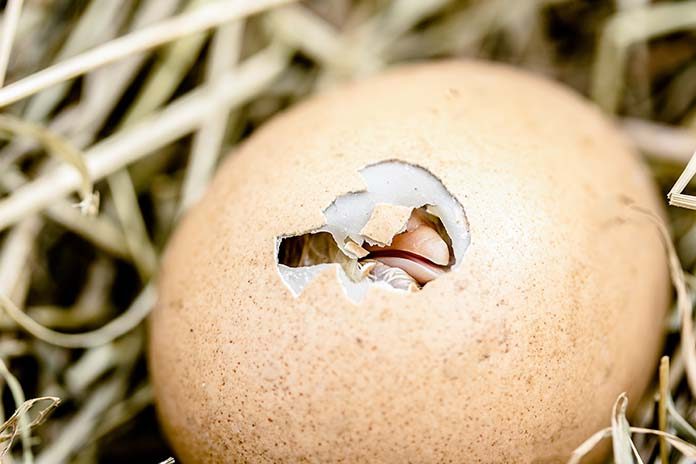 With the head over the wing, the chick can punch through the egg, but it can’t achieve the correct angle to continue moving around. This usually results in one single punch hole near the top, not enough for the chick to hatch.
