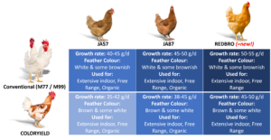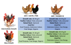 “It is very difficult to answer this question as Hubbard offers a large range of Premium breeder females and males for markets ranging from dual purpose, organic, Label Rouge, 81-day free range, 56-day free range, certified indoor, and the ‘Better/European Chicken Commitment’ in North America and Europe.