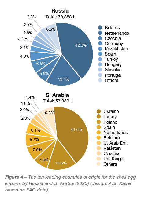 Obviously, the strategy of both countries was to avoid a dependency on only one country and to reach supply security by importing eggs from various countries. It is worth noting that because of the political tensions Ukraine did not export eggs to Russia. There is no information available however regarding the large production units in the eastern parts of Ukraine, which are controlled by Russia. Perhaps they are still producing and eggs are shipped to Russia.