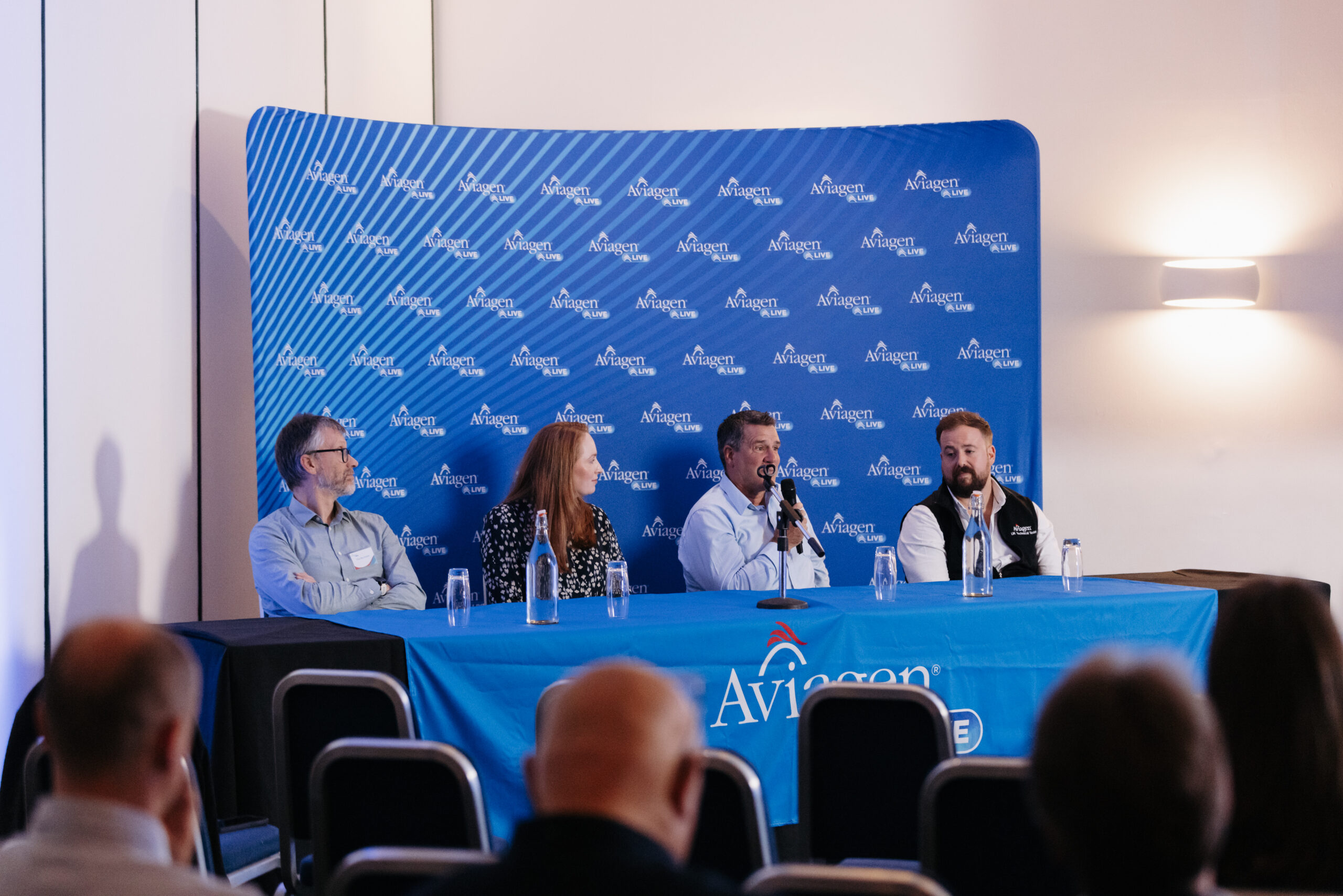 Panel discussion. A panel of Tim Burnside, Global Vice President of Welfare, Sustainability and Compliance, Aviagen Group, along with Colin, Lauren, Brendan (in Edinburgh) and UK technical managers, invited open questions and perspectives from attendees.