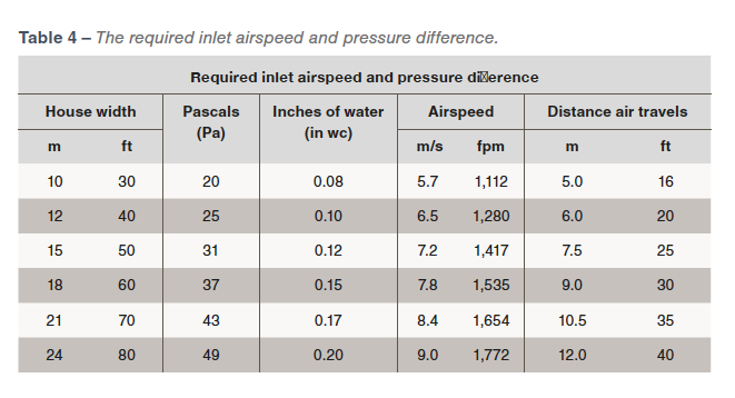 - Table 4 can be used as a reference for the correct static pressure/inlet air speed required to ensure incoming air stays as close to the ceiling until it reaches almost half way across the house.