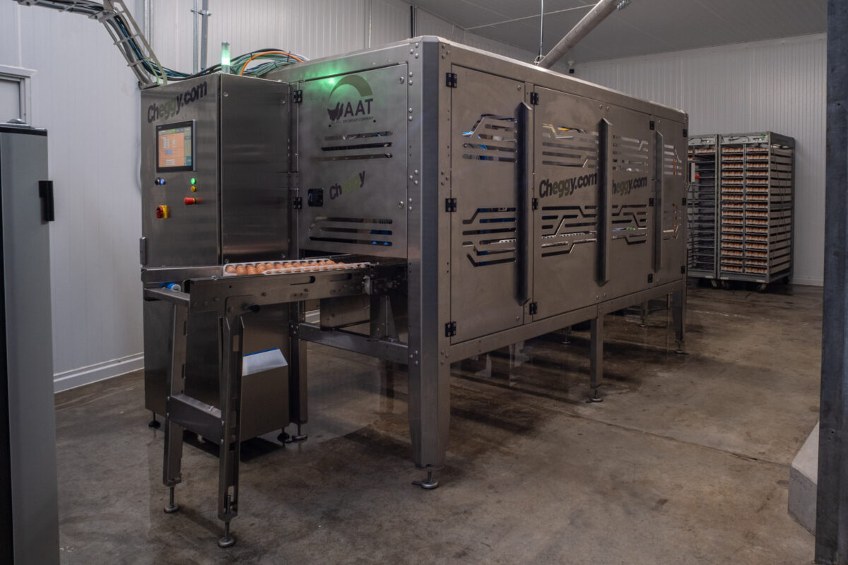The CHEGGY technology was developed by Agri Advanced Technologies (AAT). By using the state-of-the-art hyperspectral analysis to determine the sex of the embryo without penetrating the eggshell, the non-invasive method reduces the risk of infection or other complications, and ensures a high hatchability rate without the need for a surplus of hatching eggs – a significant advantage over biochemical methods.