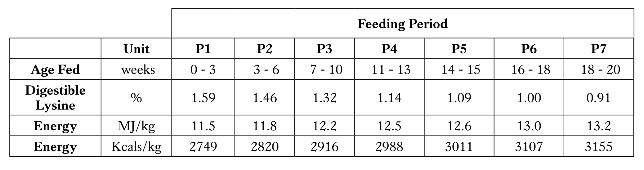 A summary of the ‘commercial standard’ feeding programme and nutrient levels are shown in Table 2.