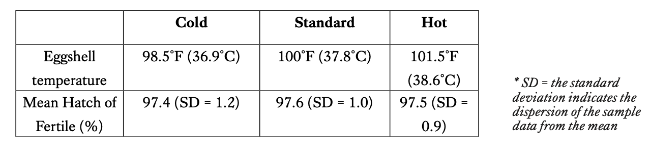 2. Standard group: target eggshell temperature of 100°F (37.8°C)